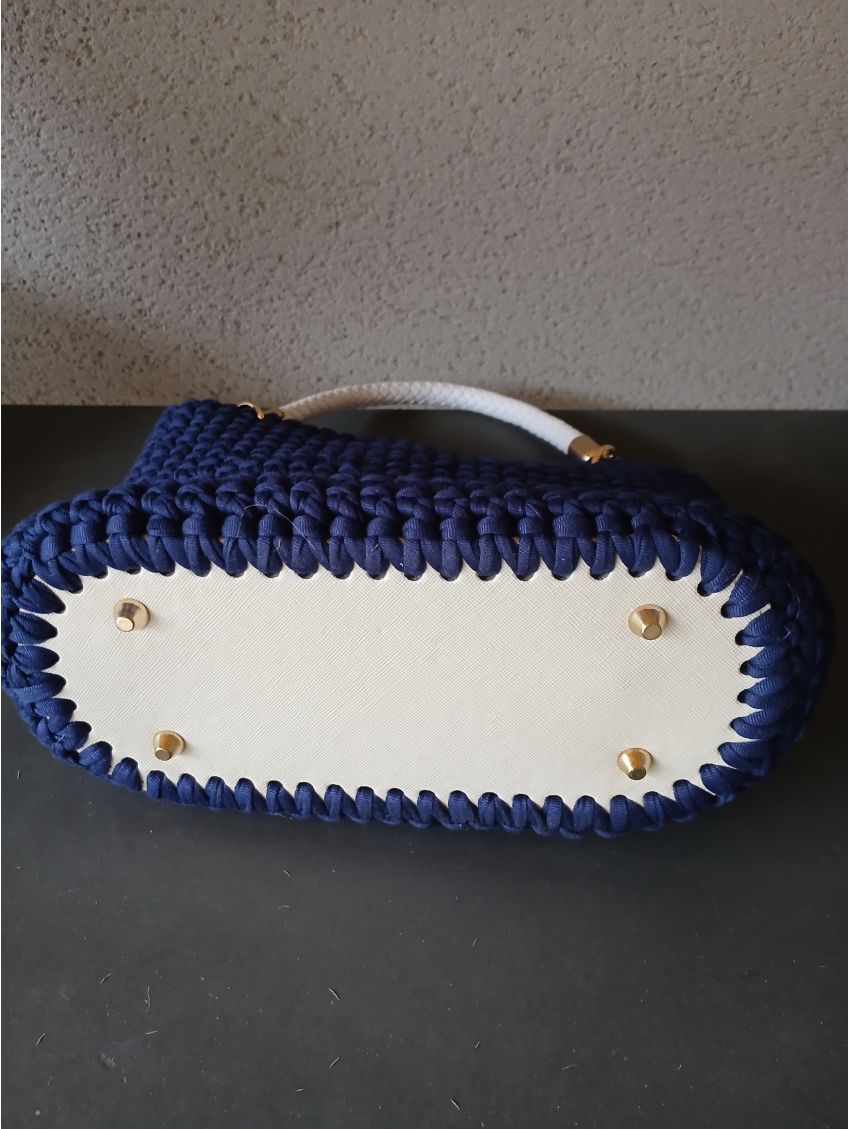 Sac bleu roi fait au crochet avec anses blanches