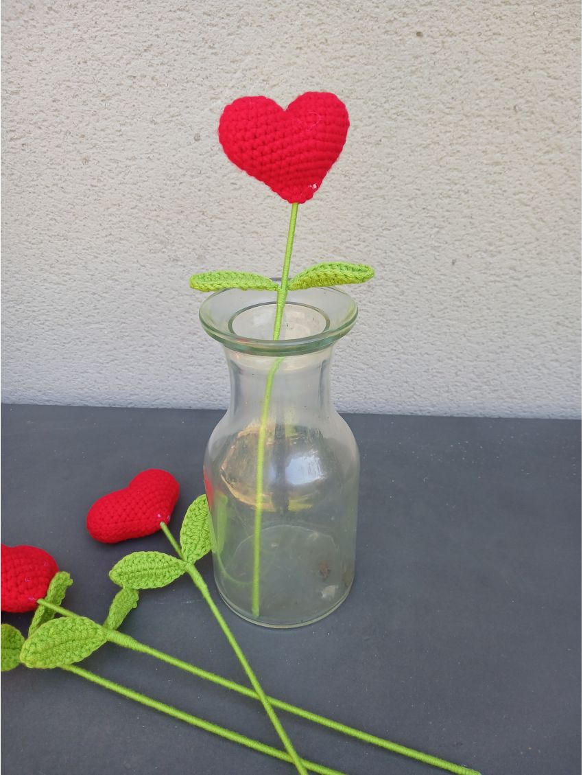 Trés jolis coeurs rouge sur tige 33 cm, coeur 8cm X 6cm
