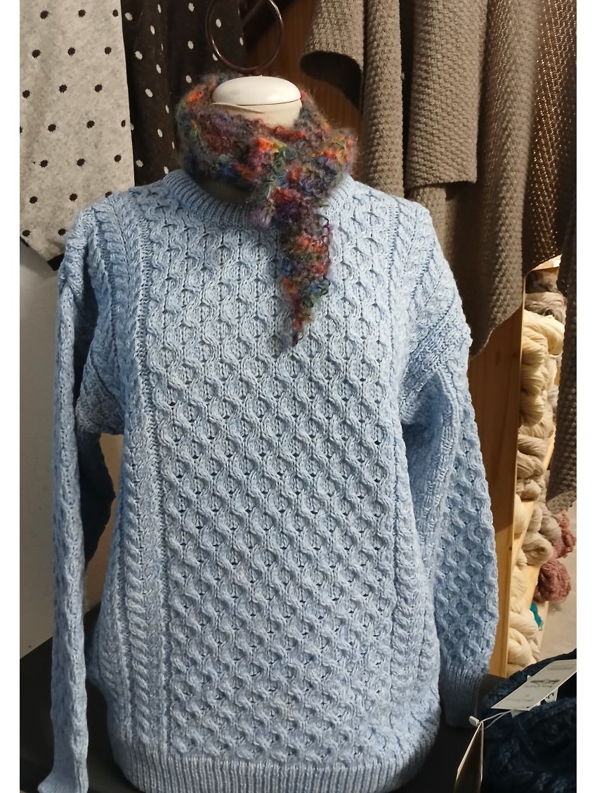 pull irlandais 100 % mérinos, avec torsade, très agréable à porter